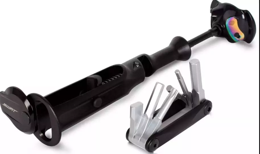 Den oppbevarer et nød-multiverktøy og kjedekutter inne i styrerøret på en dempegaffel, for enkel transport og umiddelbar tilgang.